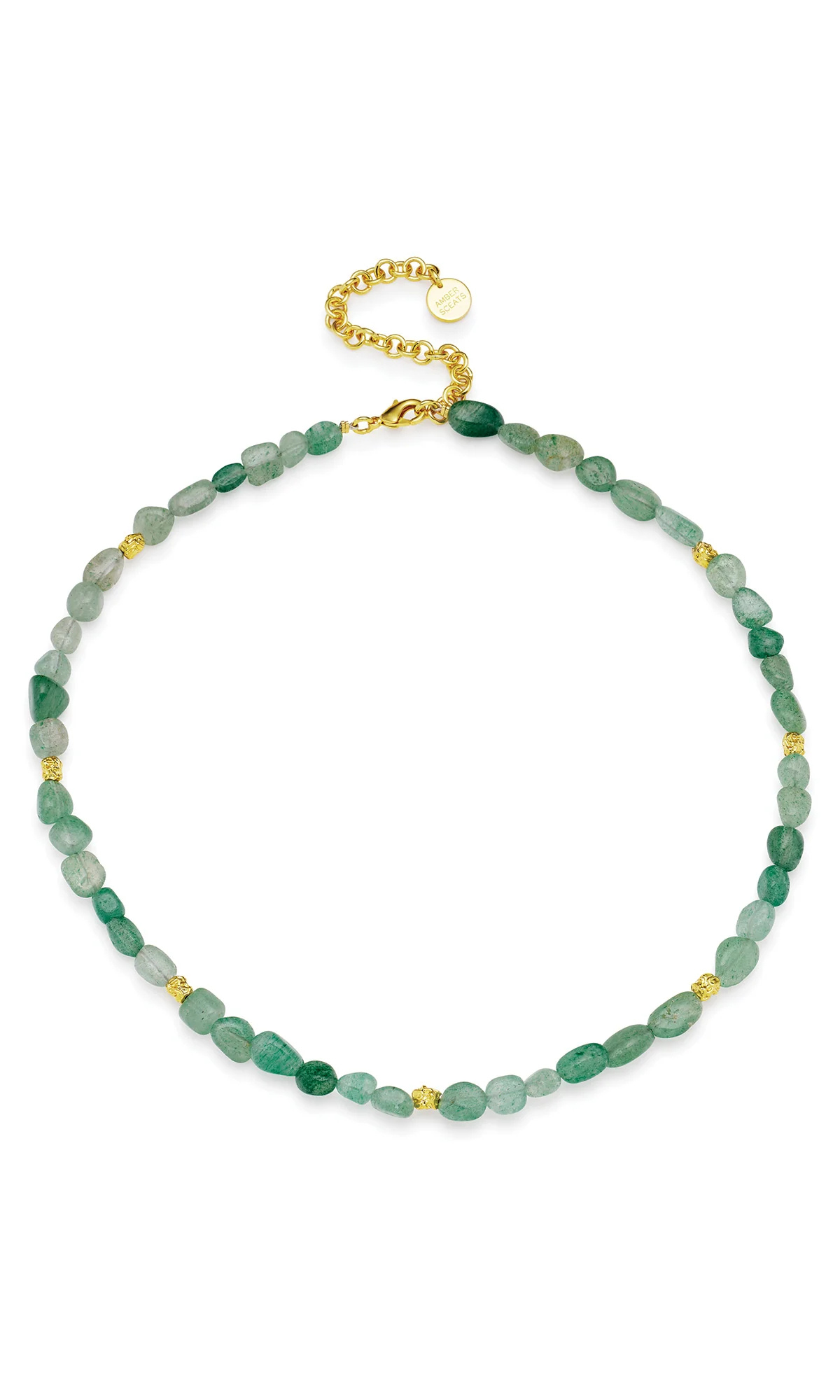 The Amalfi Necklace features Green Aventurine, characterised by its translucency and glistening effect. The pastel Jade tones evoke tranquility and calm. Wear yours with the matching Amalfi Bracelet. Genuine semi-precious materials, please allow for natural variances in stones. Each piece is one of a kind.
