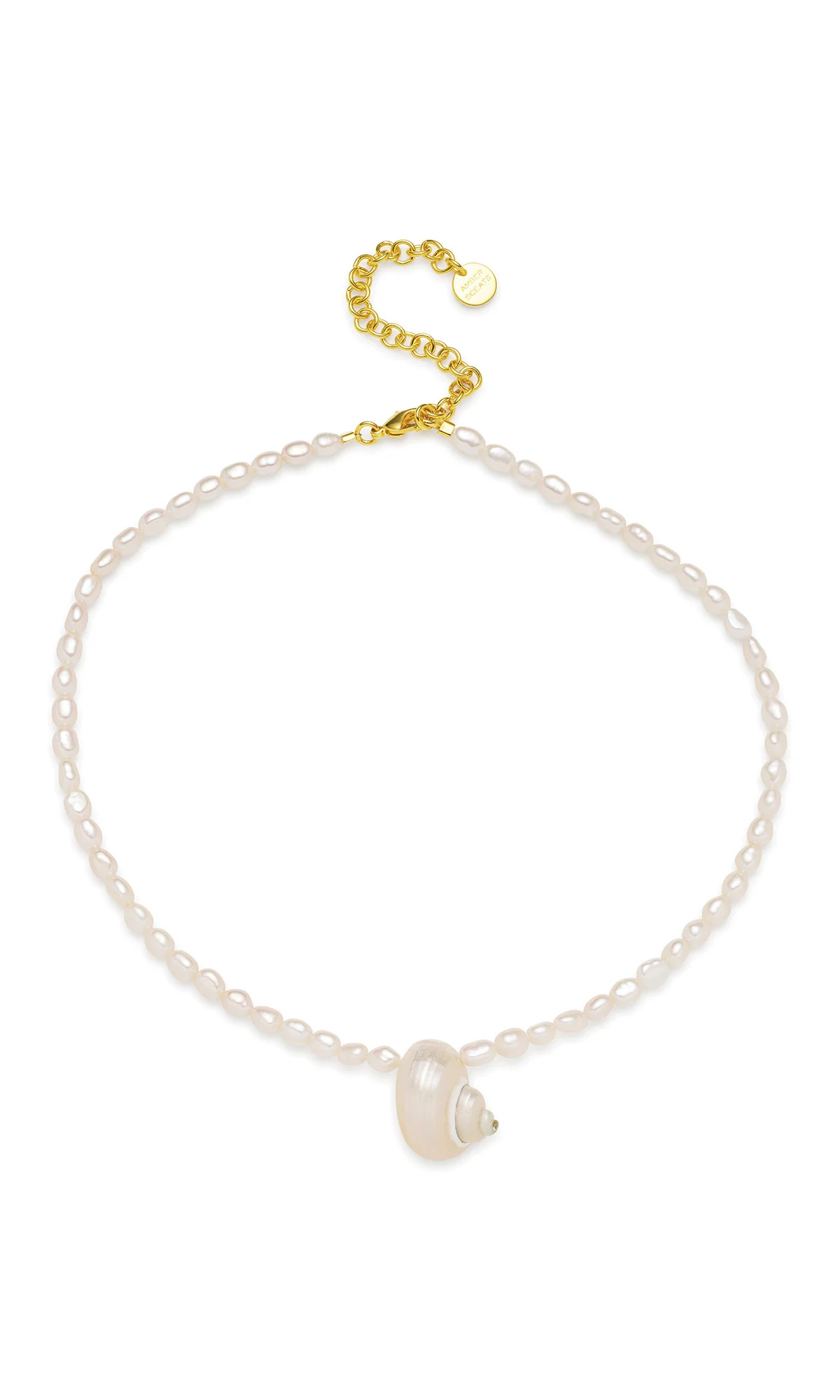 The Narni Necklace exudes Summer sophistication. Featuring a classic silhouette strung with AAA+ freshwater Pearls and a natural Seashell, inspired by the wonders of the ocean.