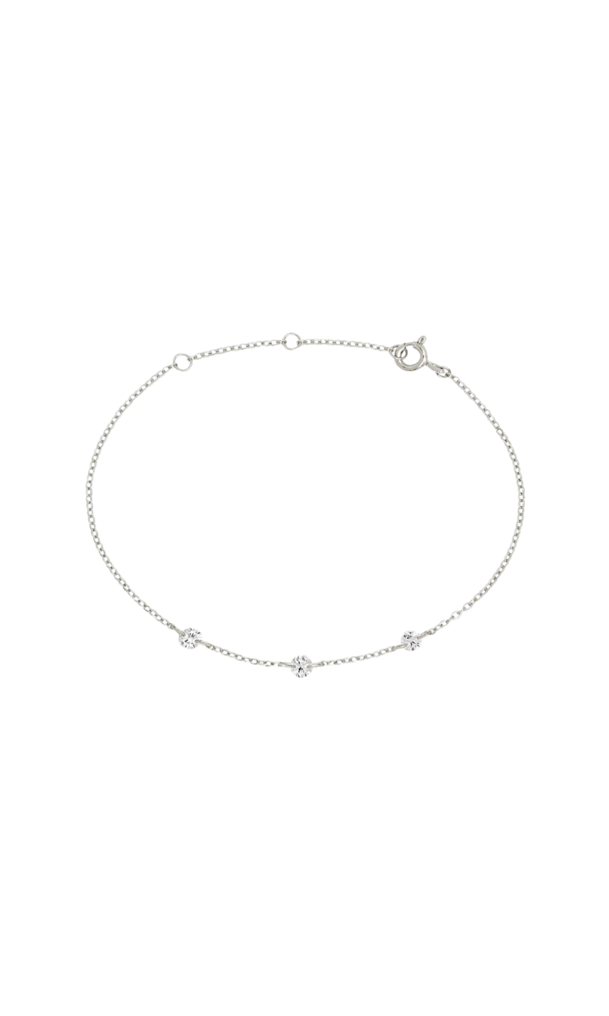 Featuring three luminous stones suspended along a fine chain, their radiance and delicacy enhanced by an innovative no-setting design that captures light from every angle - like sunlight dancing on water.