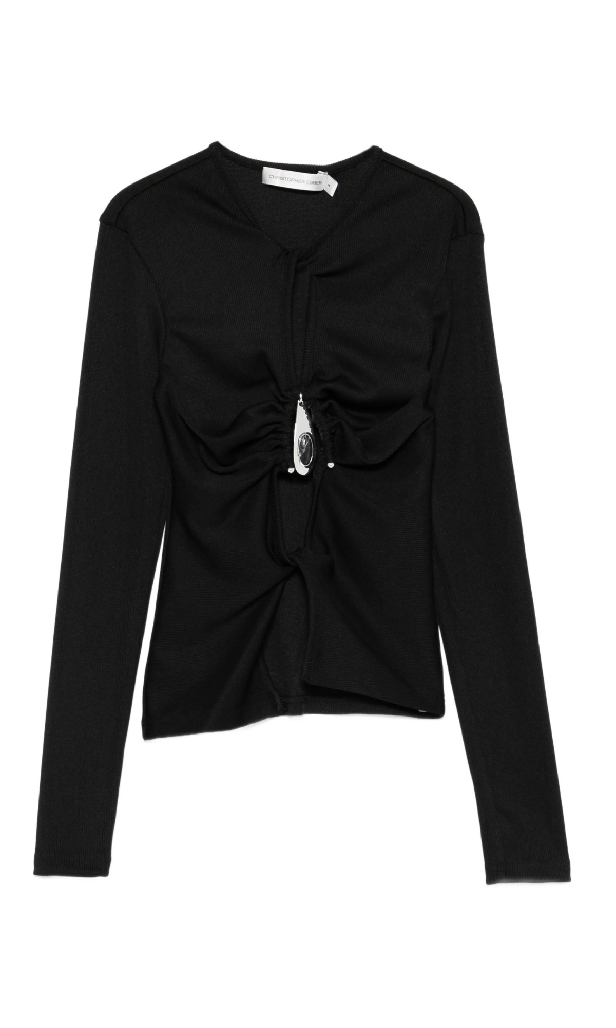 CHRISTOPHER ESBER | Crystal Pendant Open Twist Long Sleeve Top