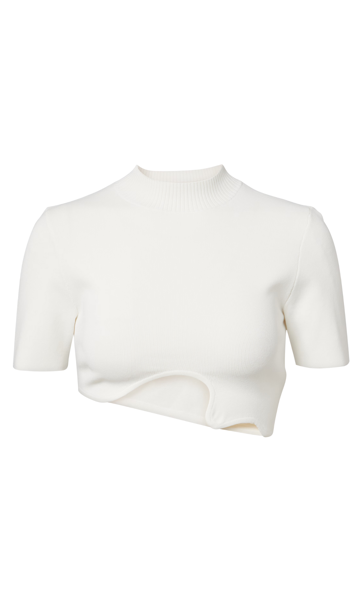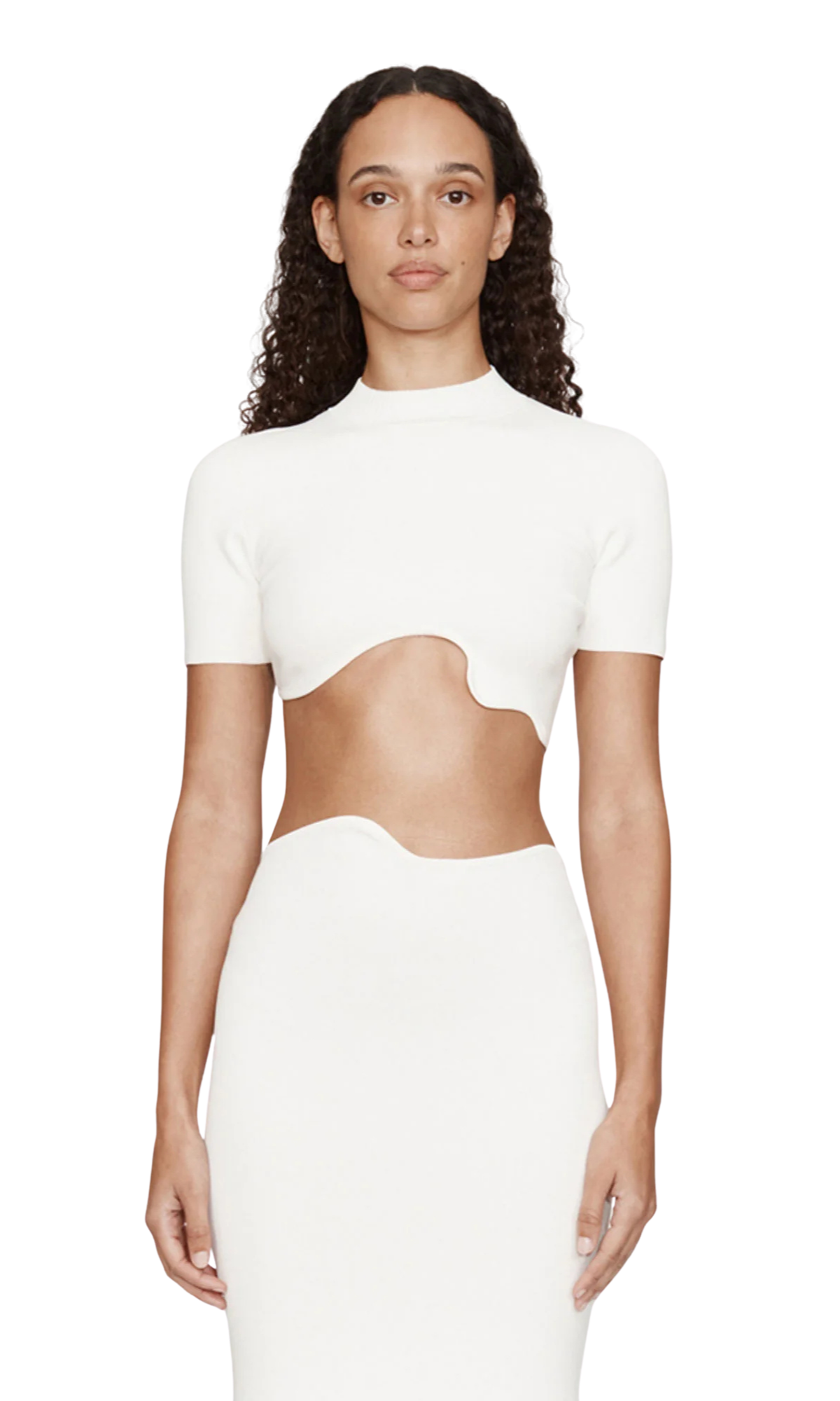 A sculpted take on the everyday knit, the Maparadita Top is defined by its curved underbust contour that cuts cleanly across the body. Crafted in a compact rib, the silhouette sits close and structured, balancing minimalism with a subtle play on negative space.
