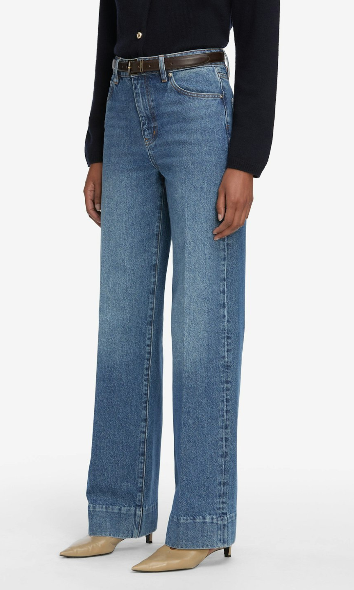 The name says it all. This sleek, streamlined jean features a nipped waist, ultra-long leg and crisp trouser hem for a dressed-up look.
