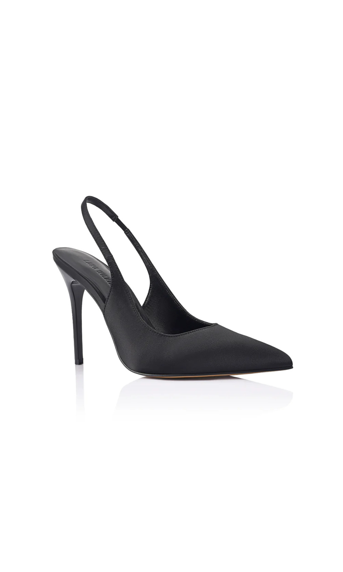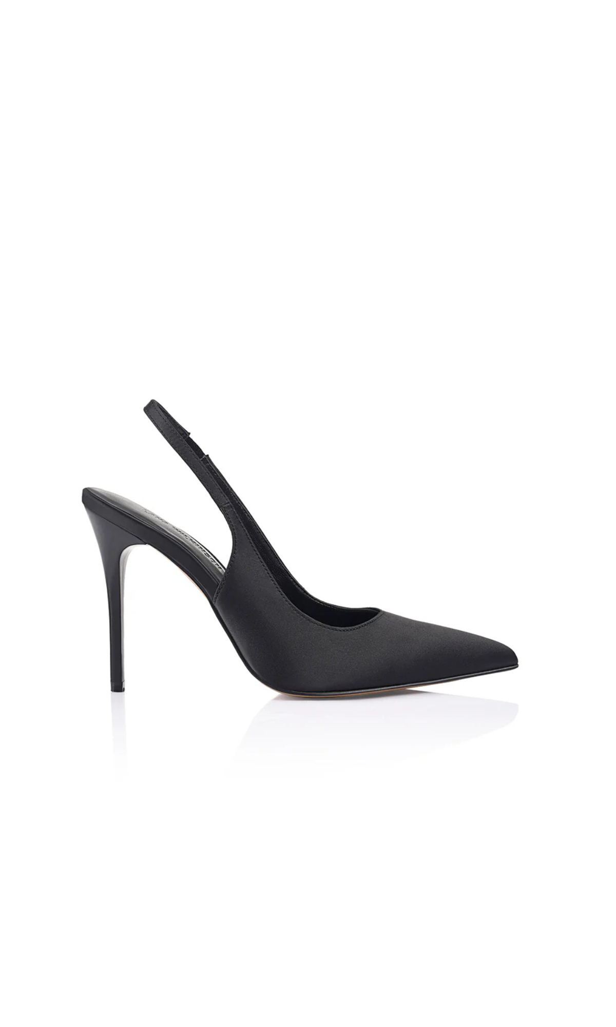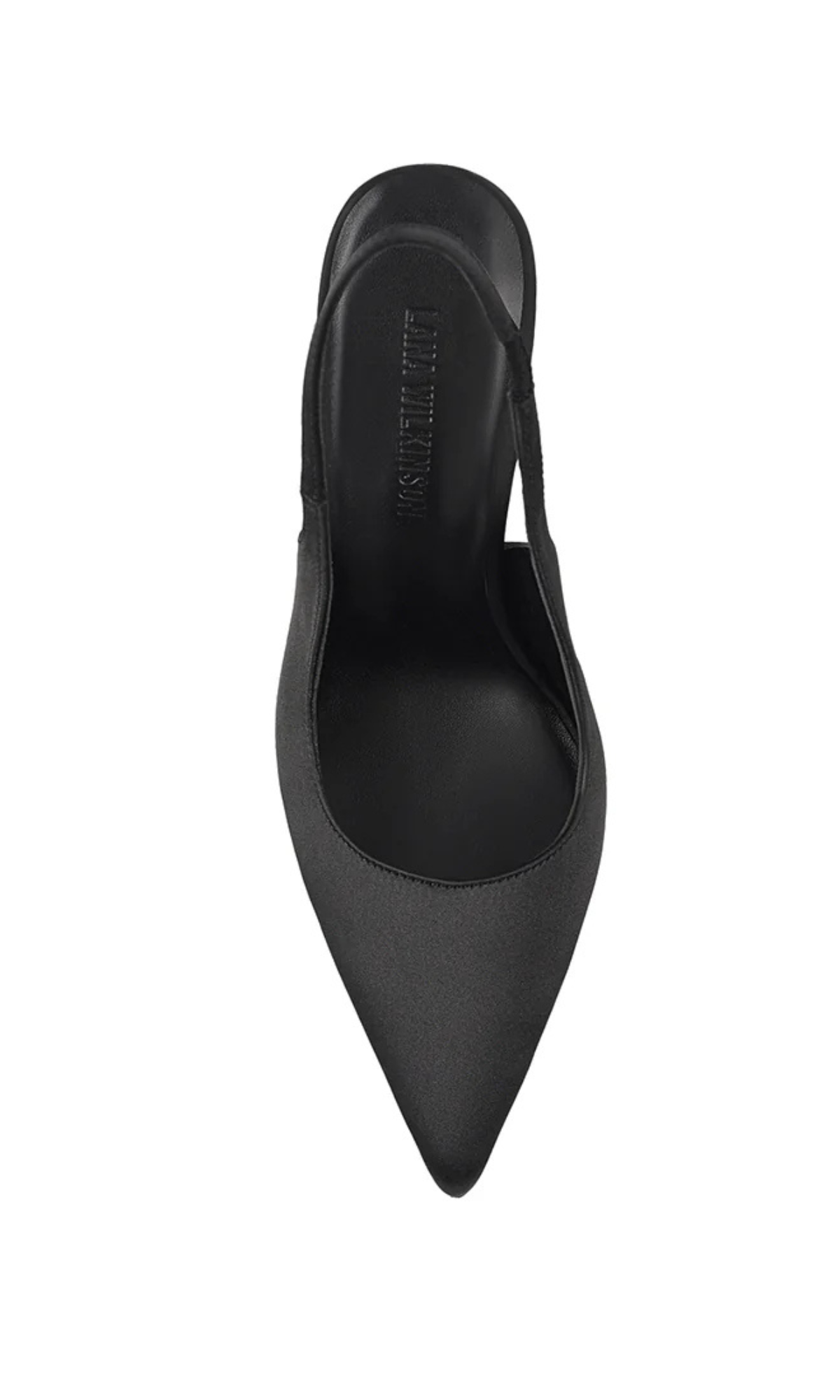 Charlize is the essence of sleek sophistication. Reimagined in rich black satin, this pointed-toe slingback exudes timeless elegance with a modern edge. Finished with a secure elasticated slingback strap, Charlize is the perfect choice for evening events, formal occasions, or effortlessly polished styling.