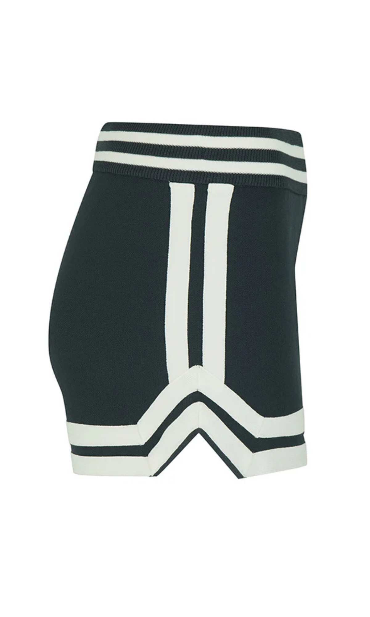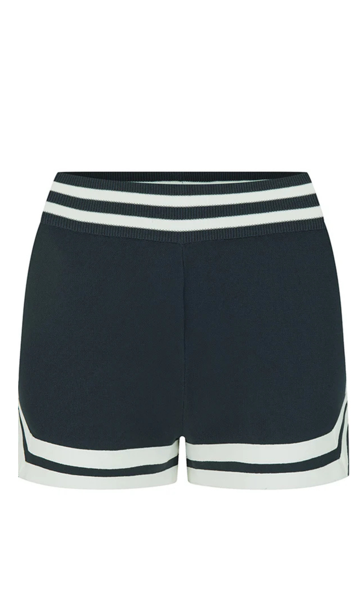• Fitted micro mini, mid-rise short with encased elastic jacquard waistband and knitted trim at hem