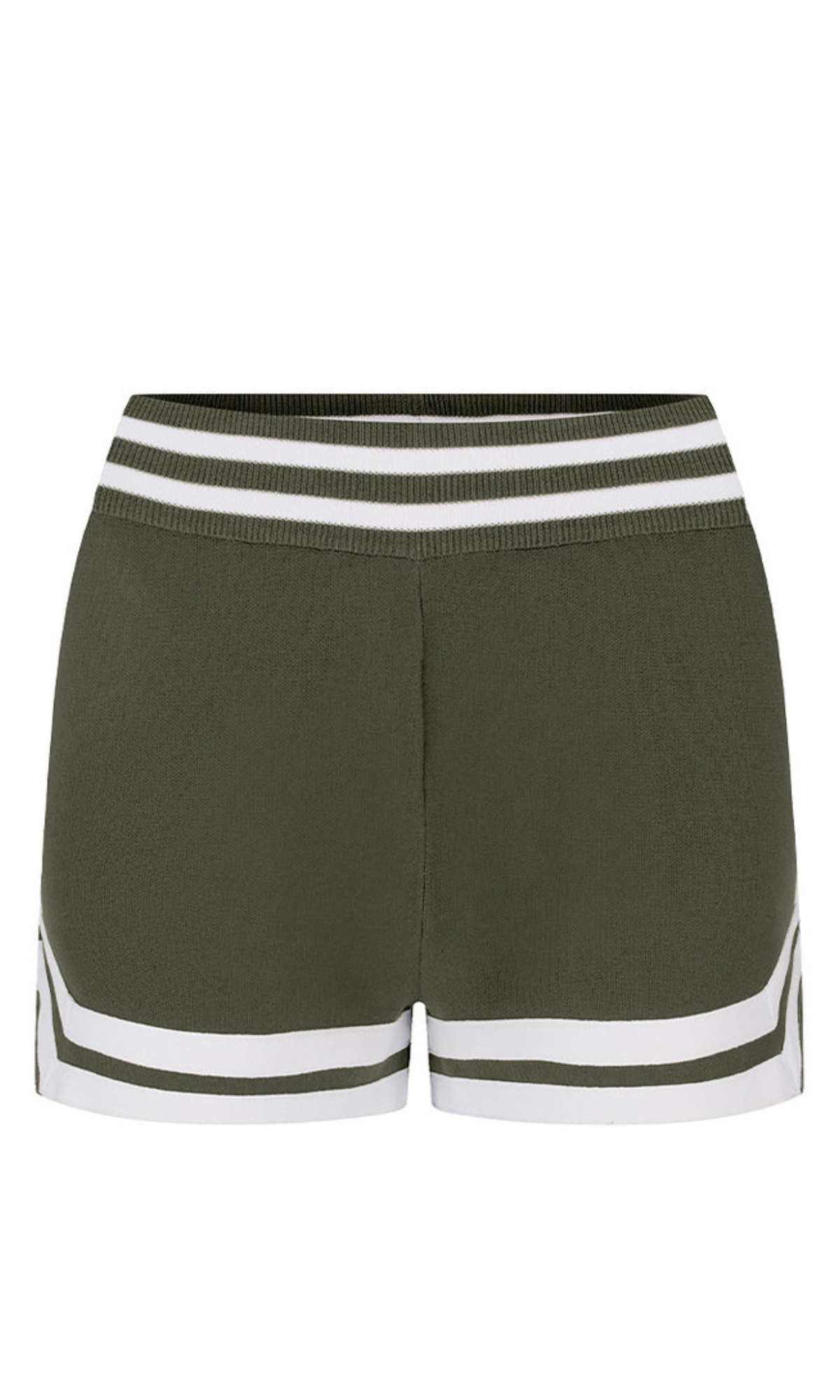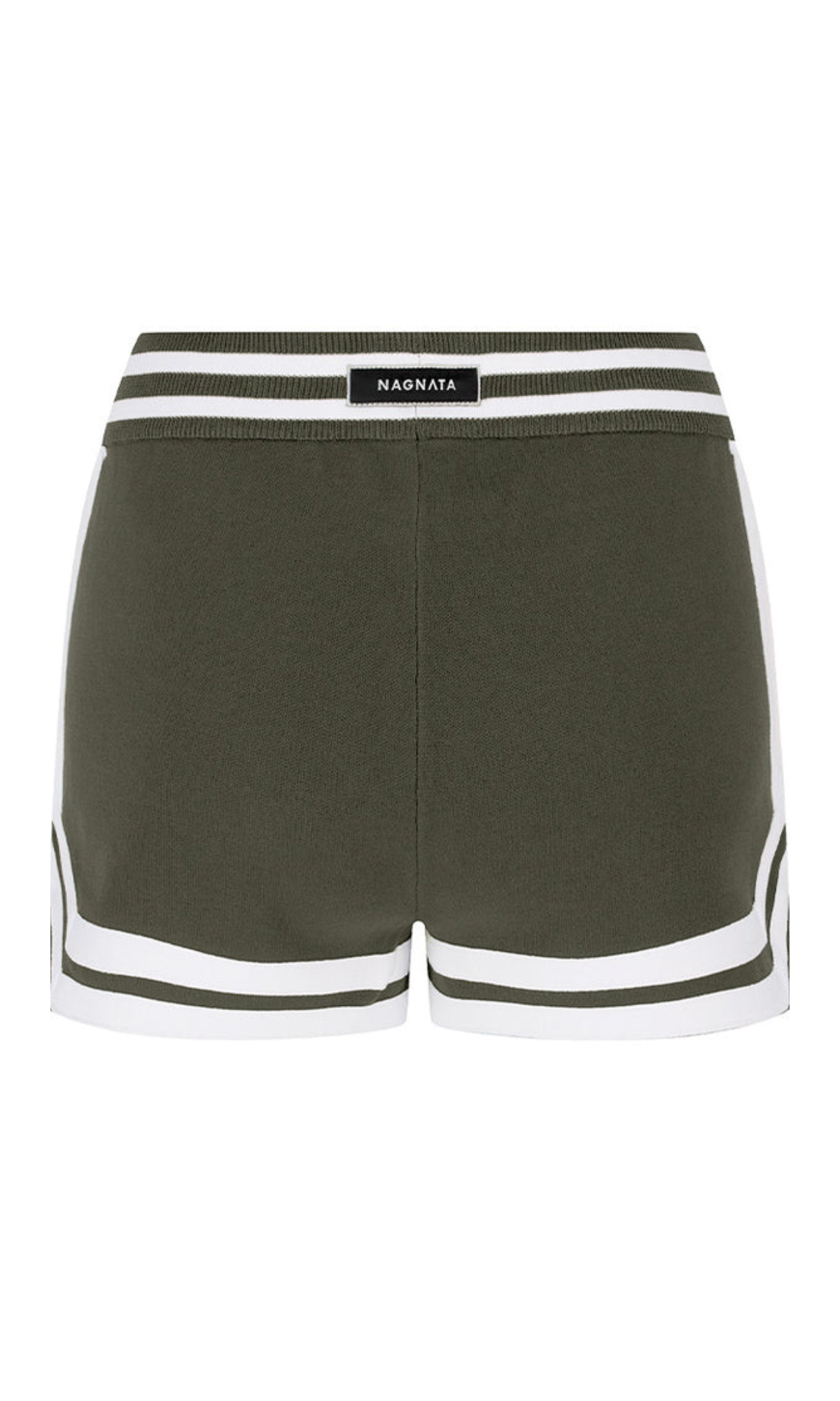 - Fitted micro mini, mid-rise short with encased elastic jacquard waistband and knitted trim at hem