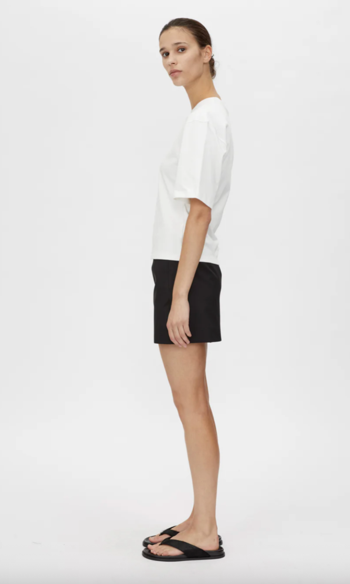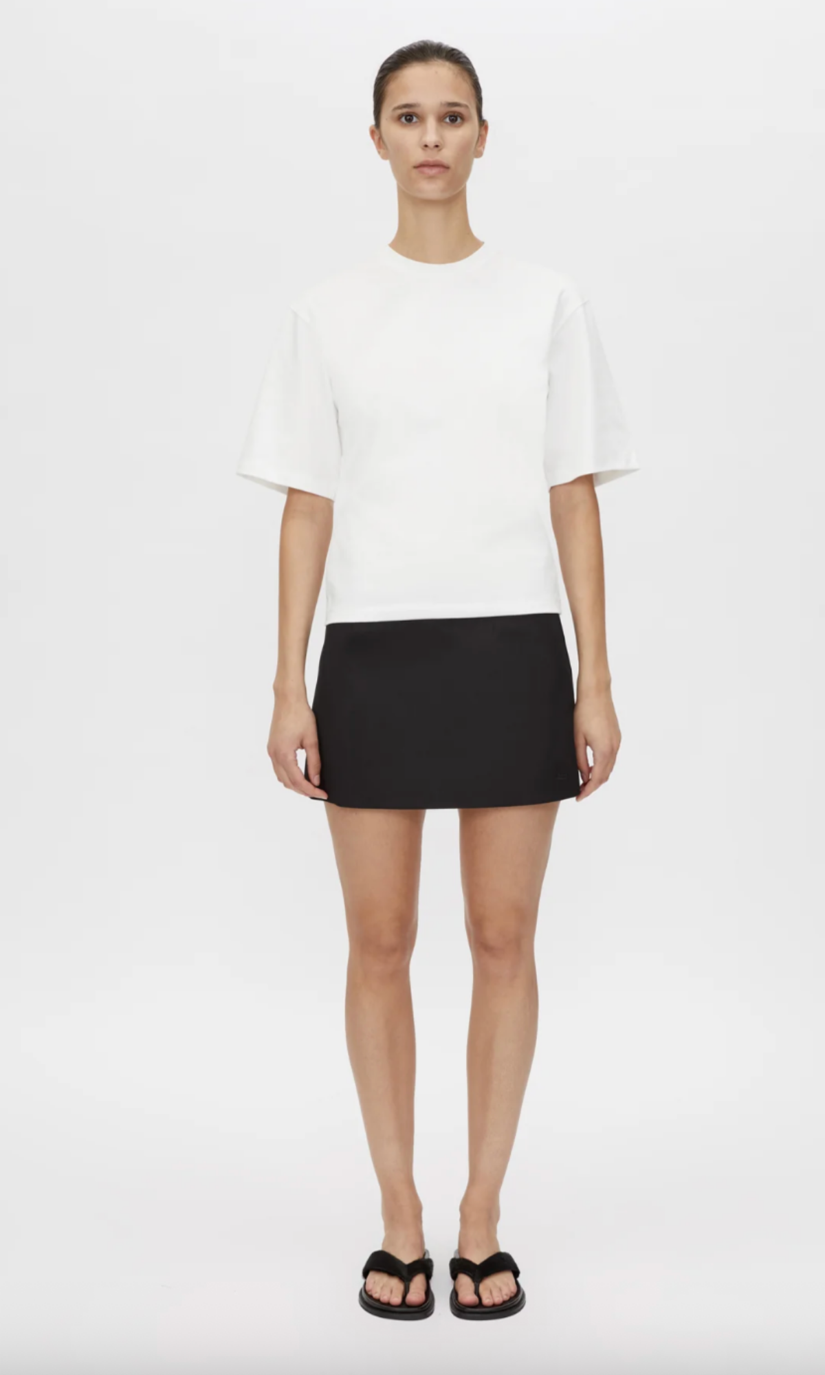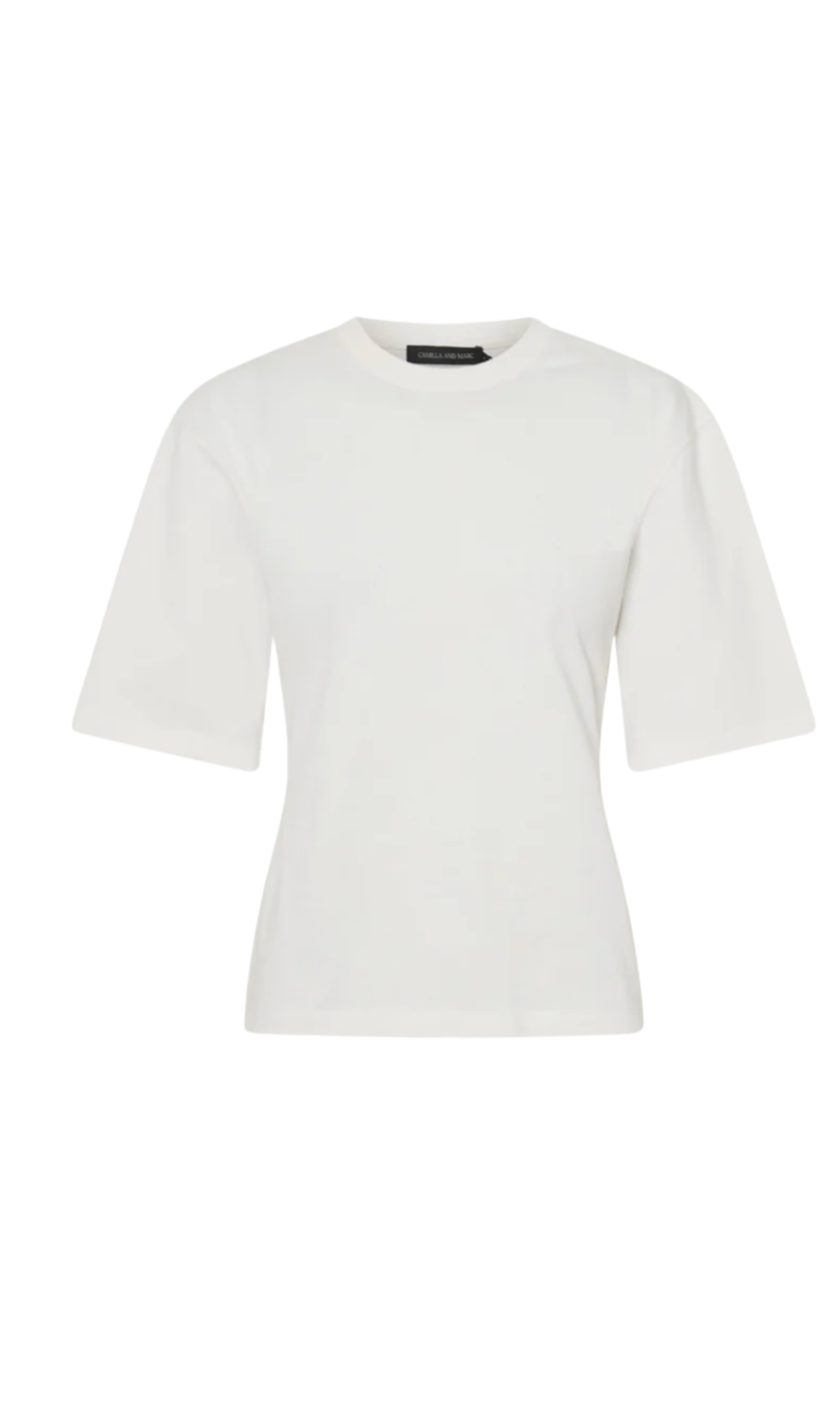 CAMILLA AND MARC Hirst white short-sleeve t-shirt with strong shoulders and a fitted waist. Ribbed crew neckline.