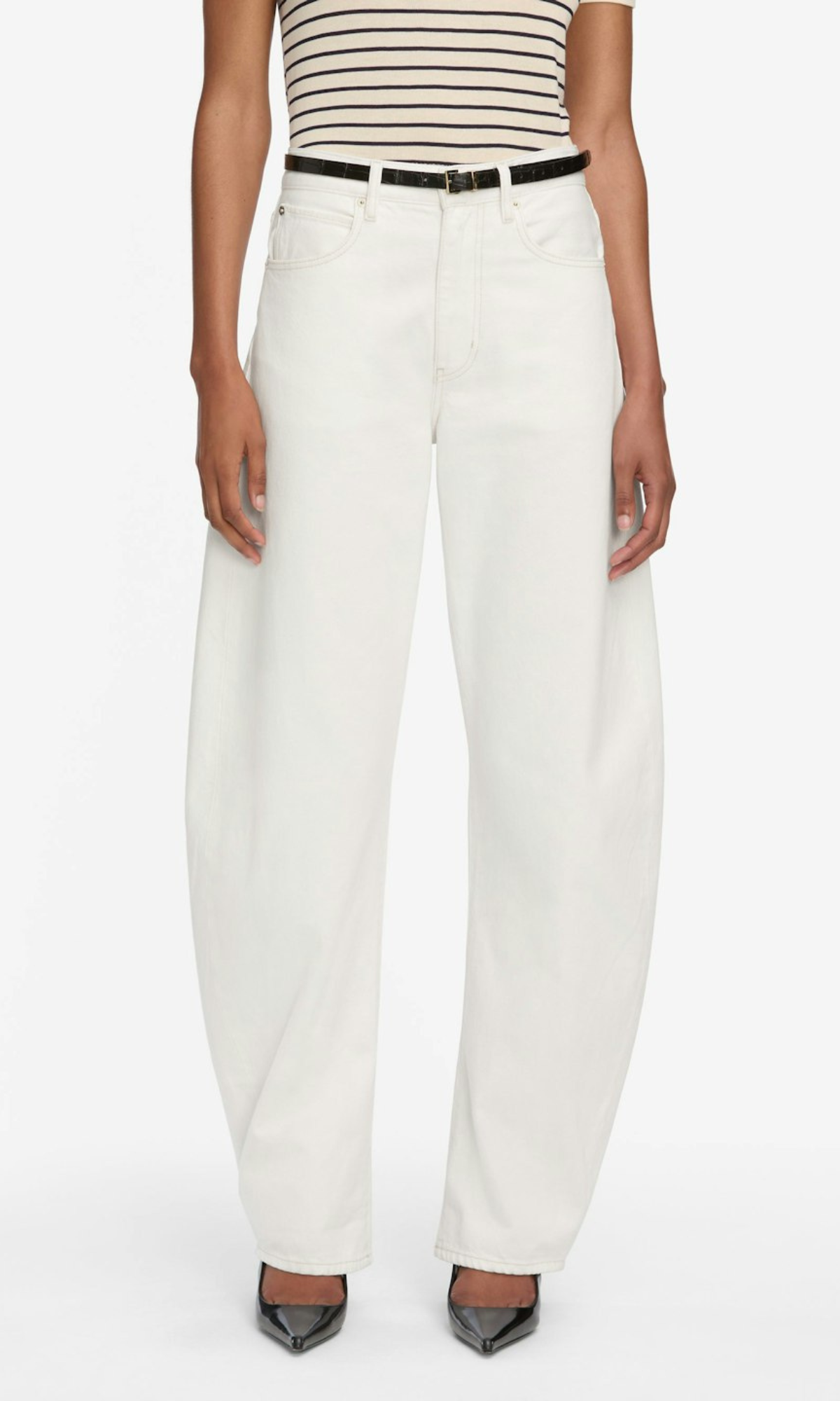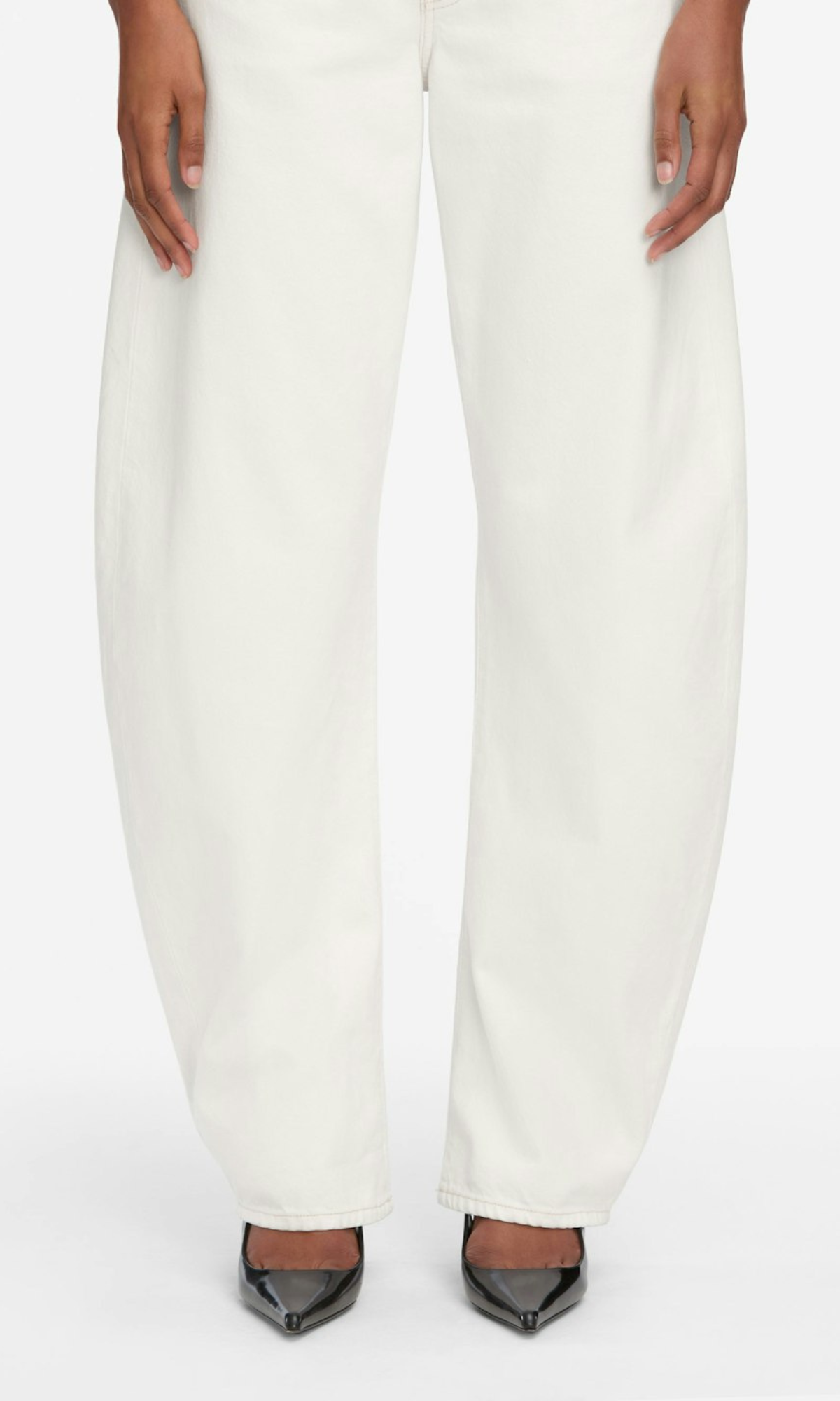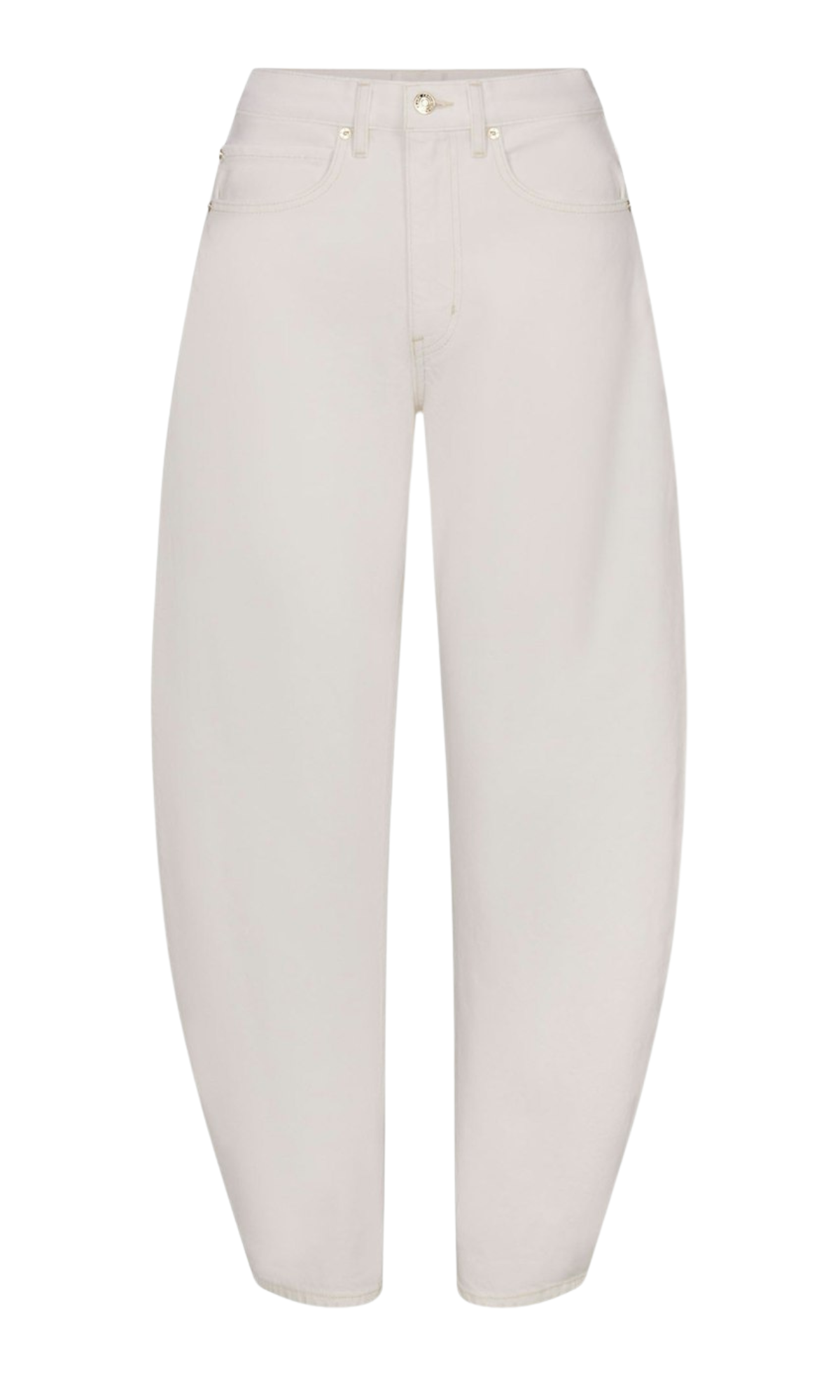 An exaggerated take on the trending barrel silhouette, this unique fit is your new closet necessity. With a flattering high rise, these jeans feature a curved outseam for a playful bubble effect. Designed to be worn cuffed and hit at the ankle, the 2.5" twice-rolled cuff can be unrolled for a longer, more dramatic inseam.