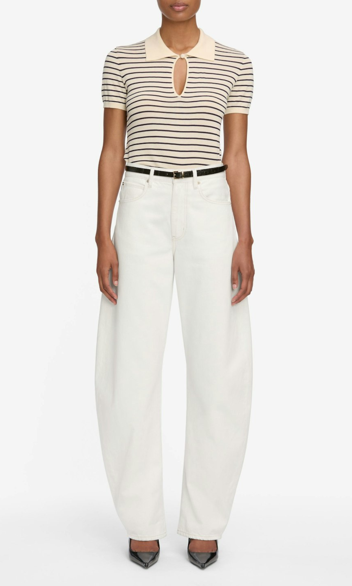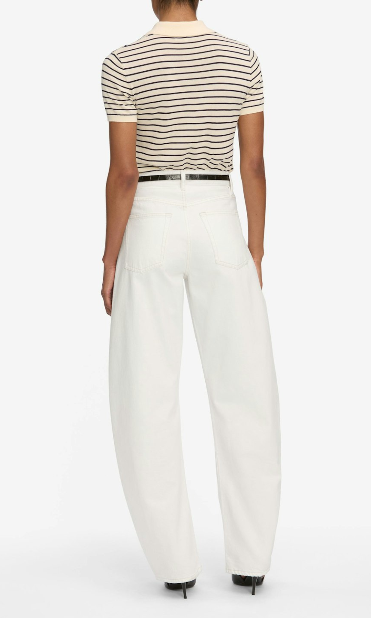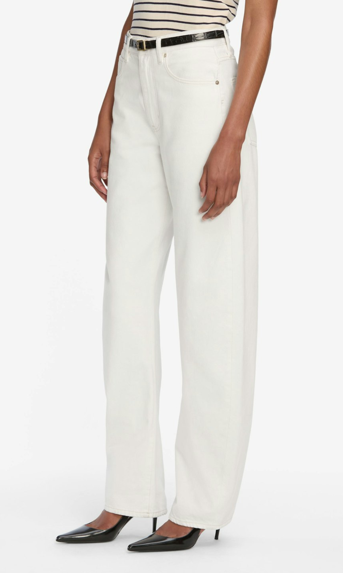 An exaggerated take on the trending barrel silhouette, this unique fit is your new closet necessity. With a flattering high rise, these jeans feature a curved outseam for a playful bubble effect. Designed to be worn cuffed and hit at the ankle, the 2.5" twice-rolled cuff can be unrolled for a longer, more dramatic inseam.