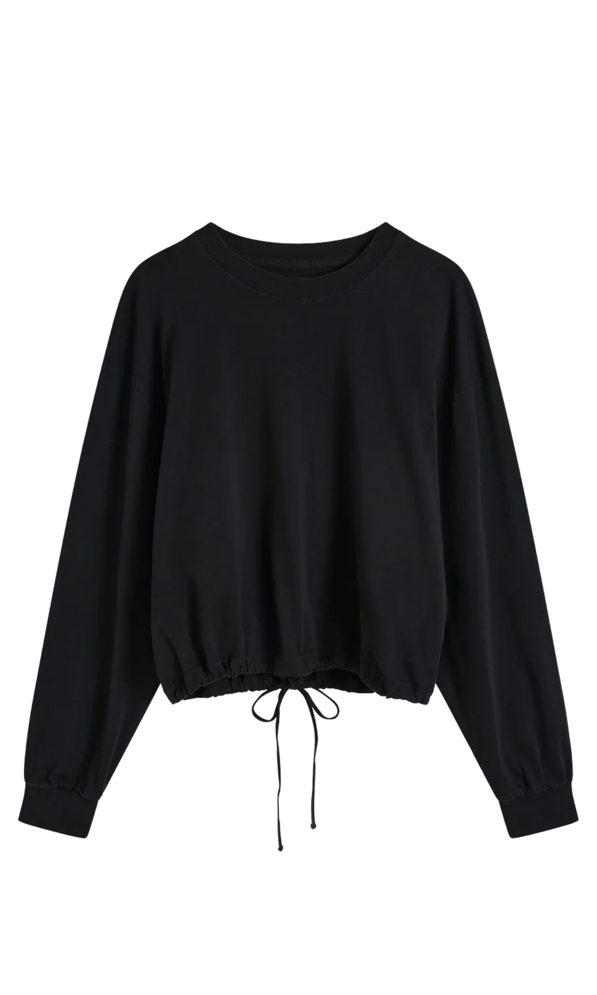 Cut from 100% cotton, the Drawstring Long Sleeve Top is designed to layer seamlessly. A clean crew neckline is finished with ribbed detailing, echoed at the cuffs. Dropped shoulders and a boxy silhouette create a relaxed feel, while an adjustable drawcord at the hem allows the shape to be cinched or worn loose.