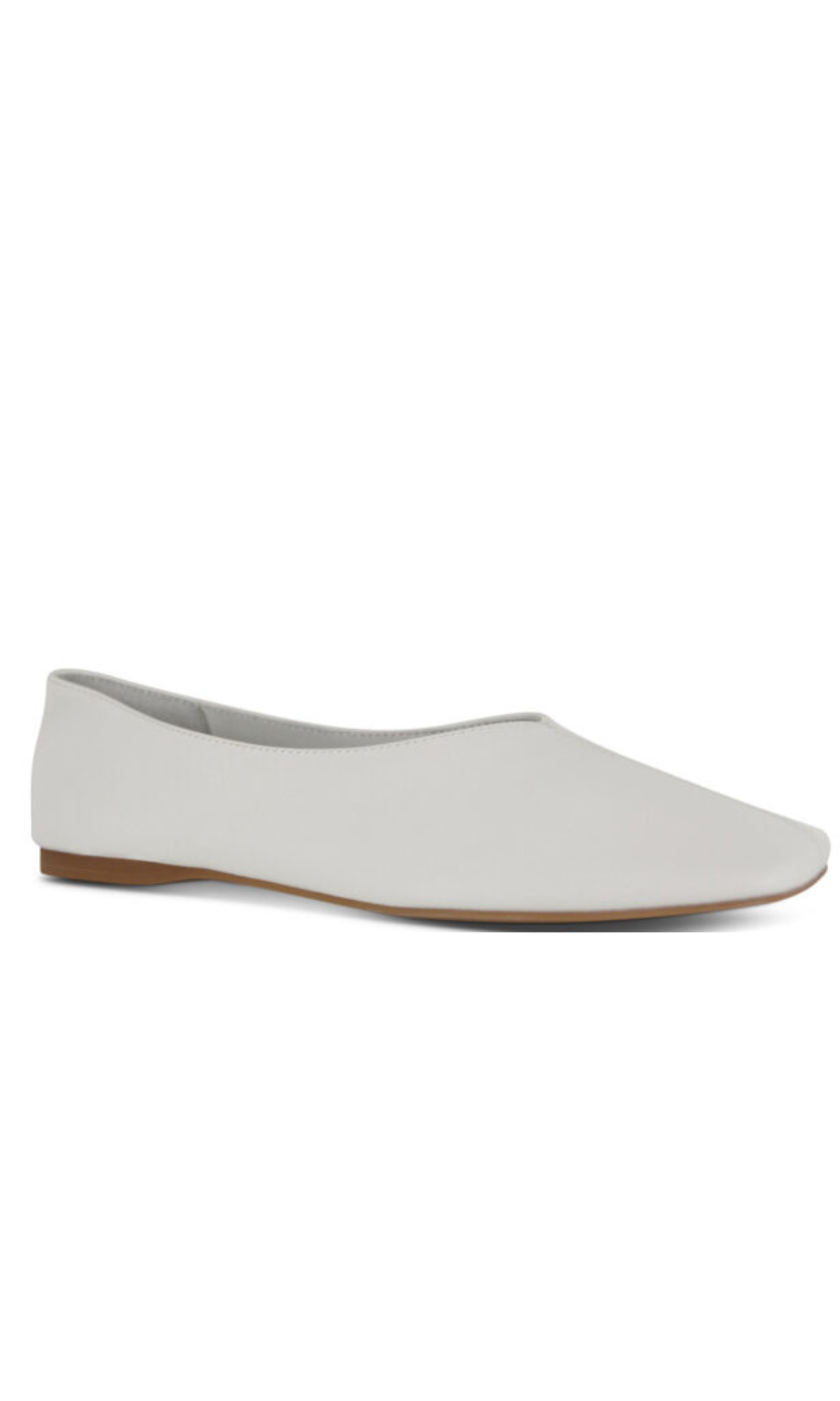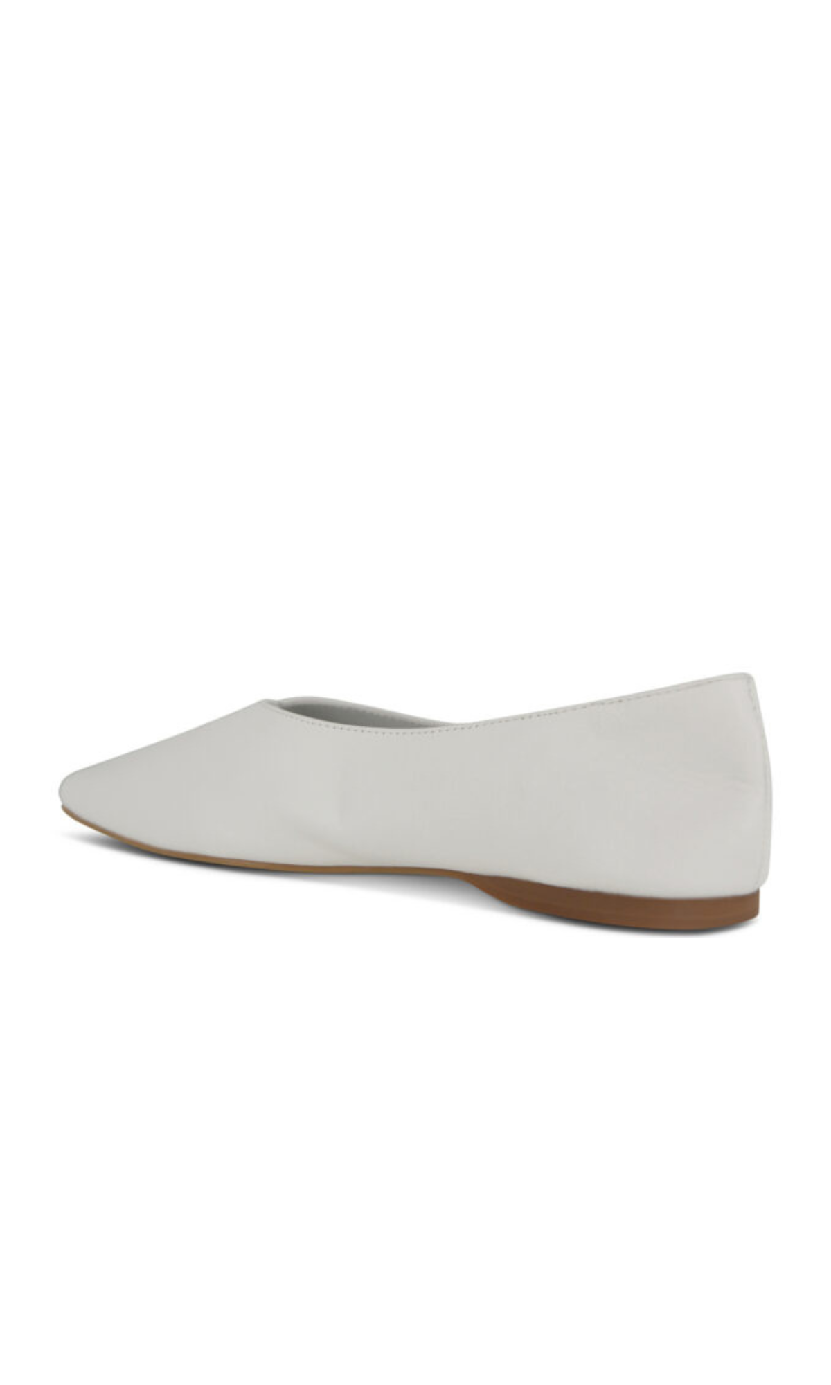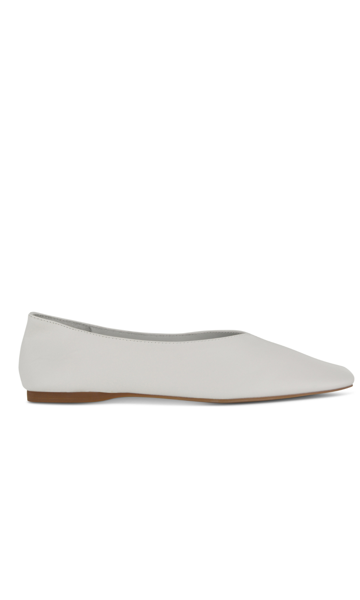White leather high cut ballet flat featuring a square toe with centre stitch detail.