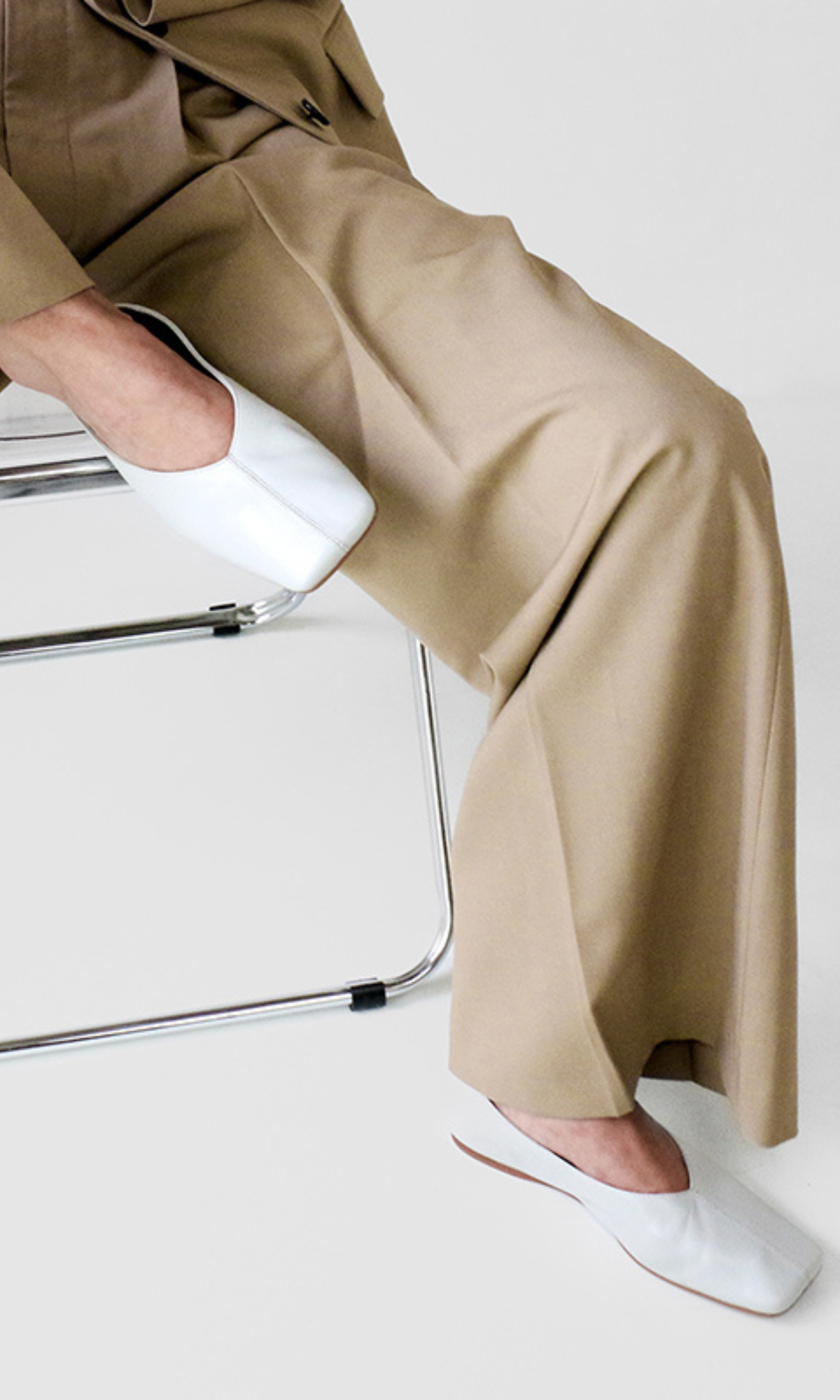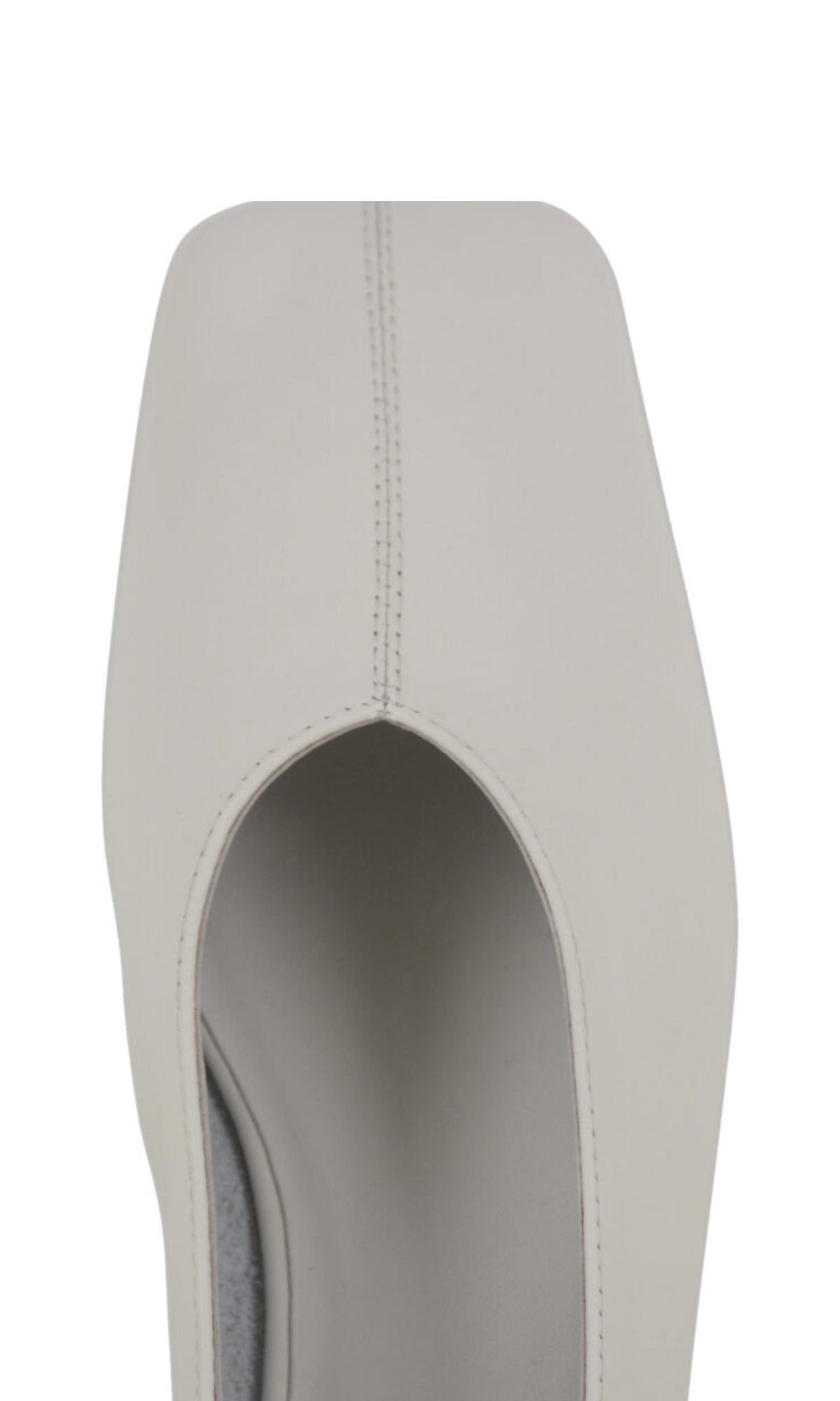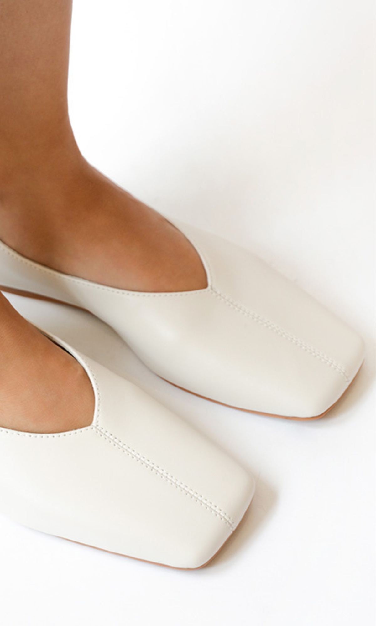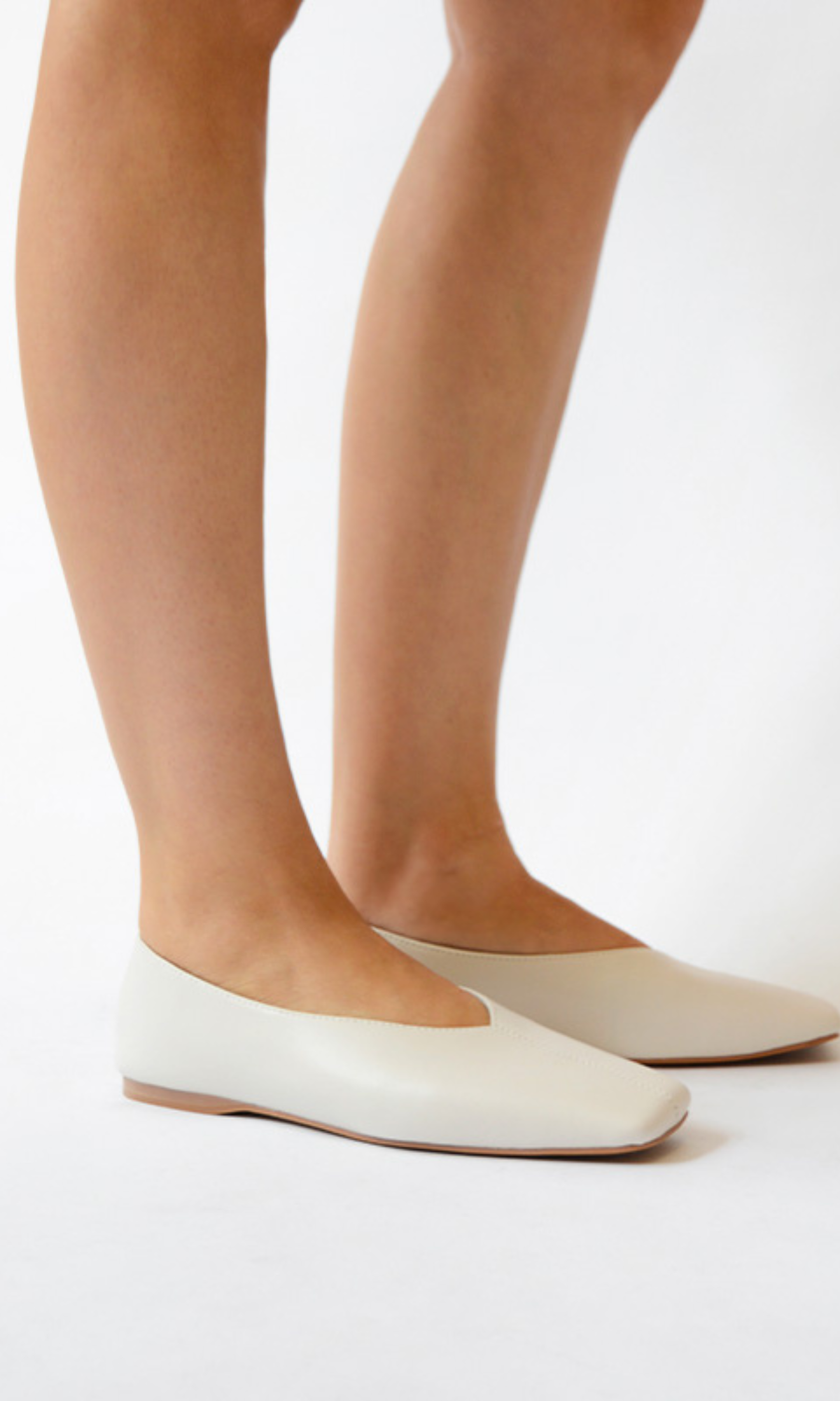 White leather high cut ballet flat featuring a square toe with centre stitch detail.