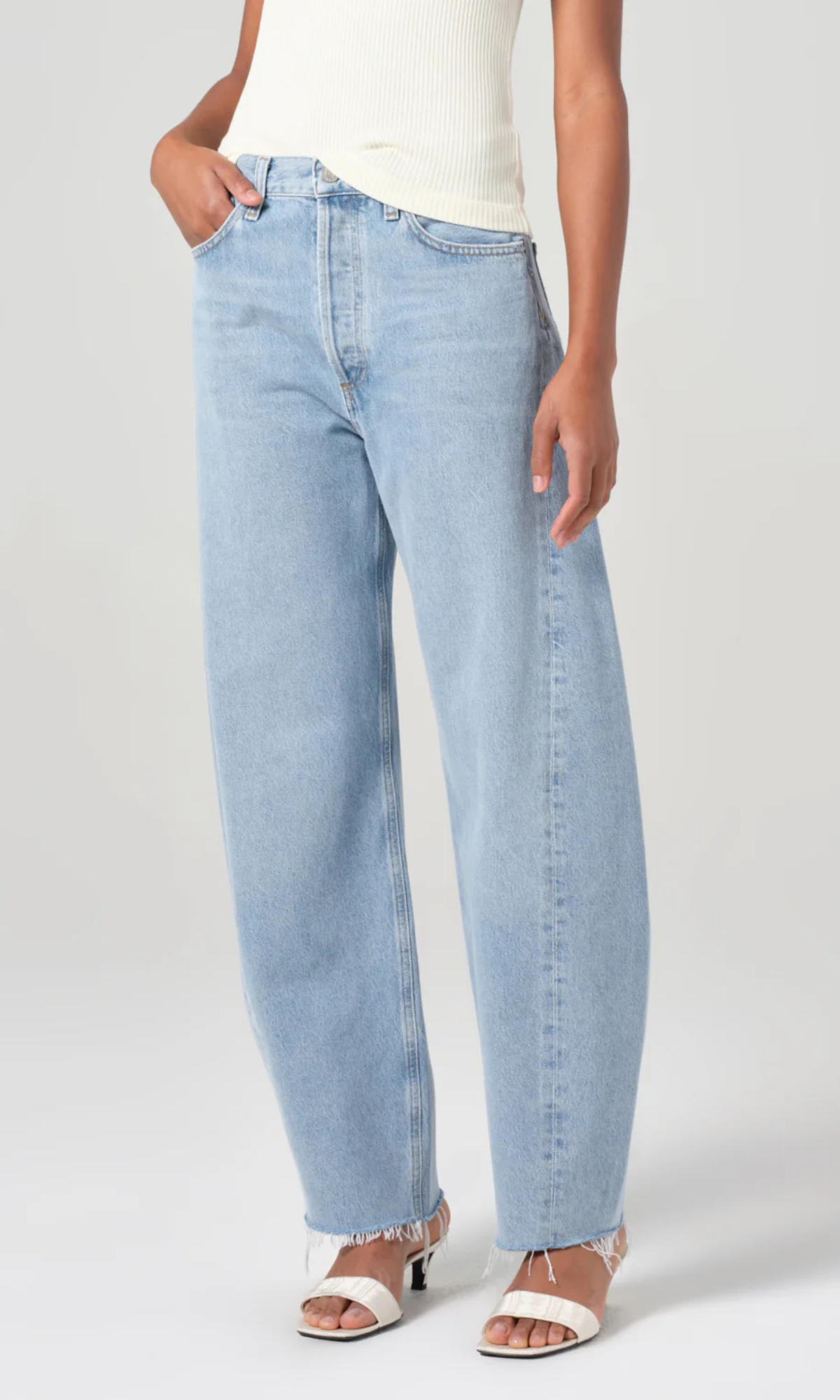 Structured to perfection. The Luna is designed with a waist-accentuating high-rise and a full-length relaxed leg. The pieced insert detailing at the outseam creates a bowed leg silhouette, ideal for taking your everyday denim to the next level.
